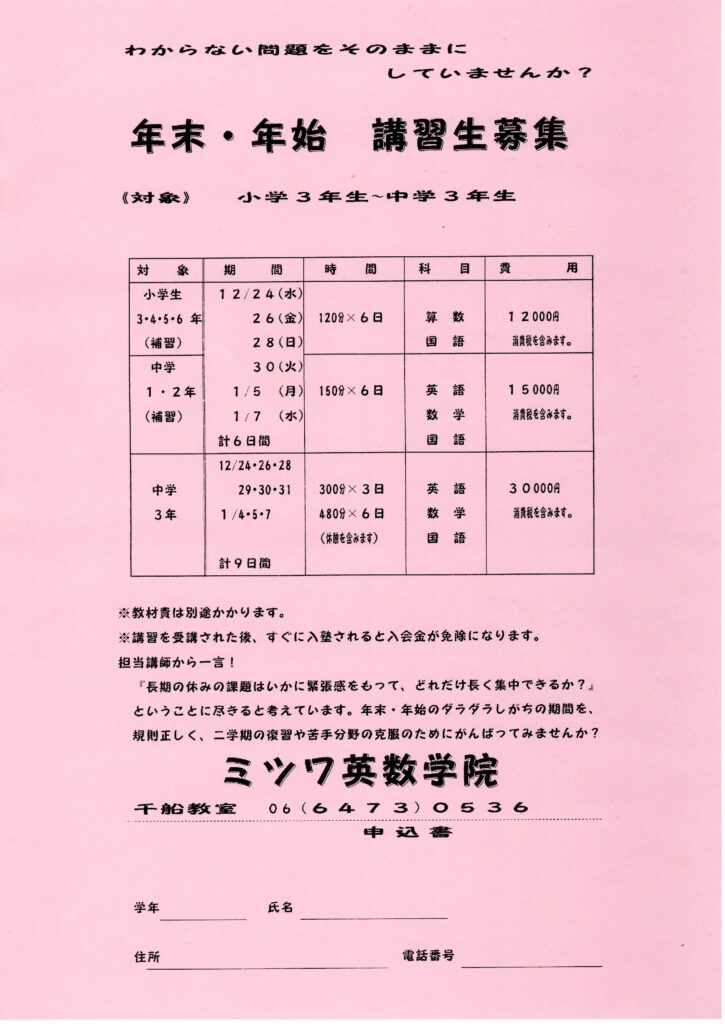 冬期講習生募集チラシ